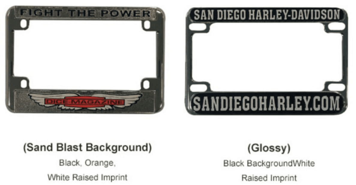 Motorcycle License Plate Frames, Custom Imprinted With Your Logo! Custom License Plate Frame Motorcycle Choose from various styles and colours to improve the look of your car, motorbike, trailer or. personalised motorcycle number plate frames. shop online for australian made number plate frames & covers. Choose from standard or personalised print number plate covers in a variety of different. create your personalised plate find a new combination for your nsw personalised. Custom License Plate Frame Motorcycle.
